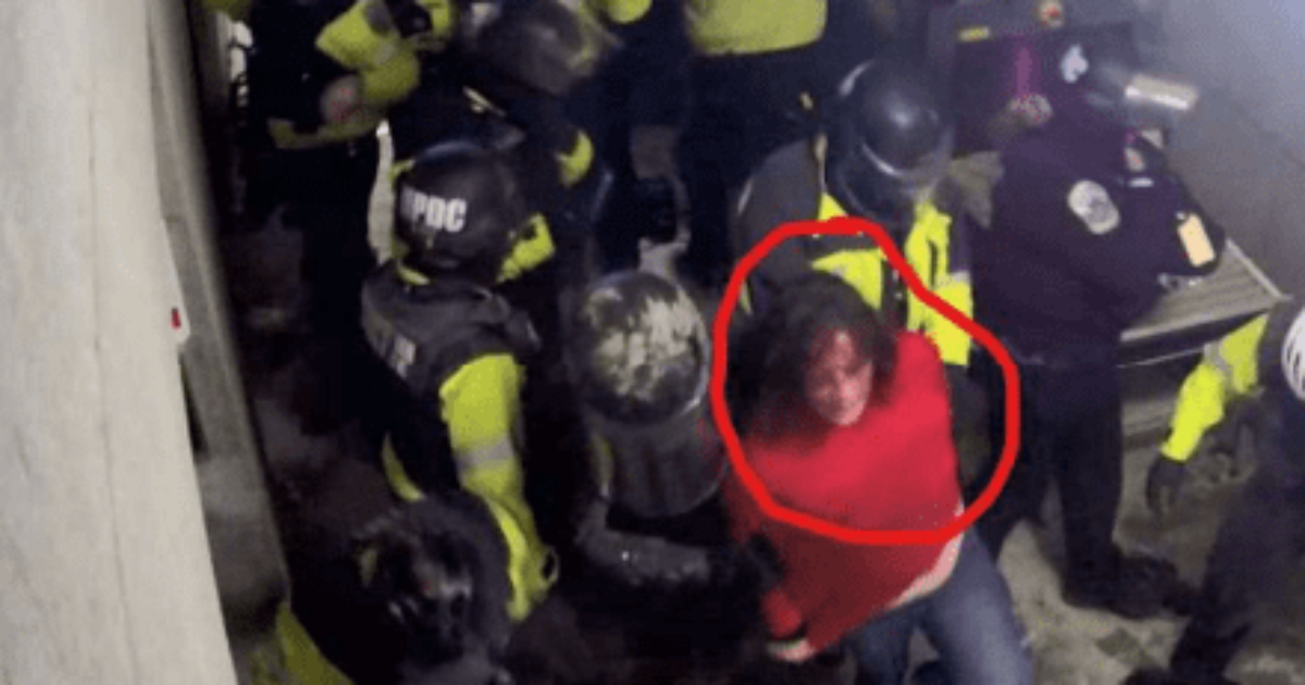 After the protest turned unexpectedly into a mob of feds and Trump supporters, White was brutally smashed in the face dozens of times by Police Officer Jason Bagshaw. She was also beaten and smashed over the head with sticks before she was dragged across the floor, and dozens of police officers paraded her through the US Capitol. She lost her shoes and her coat.